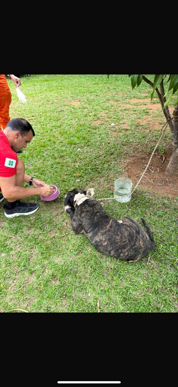 Cachorro médio, 1 ano, Pit-Bull, cor Rajada.